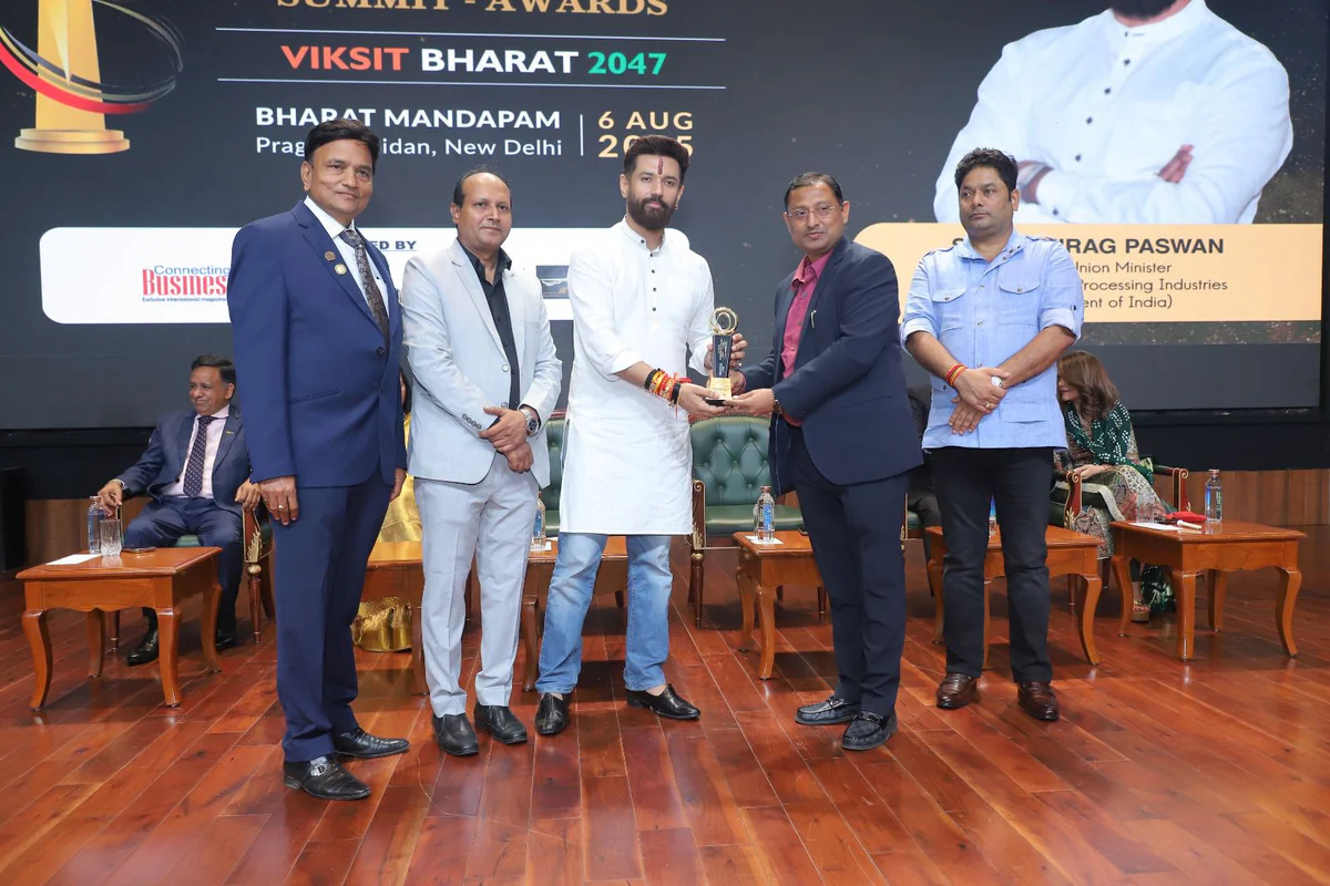 Mr. Rajesh Khetan was honored with the National Business Achiever Award 2025 for his outstanding contributions to business and industry. The prestigious award was presented by Shri Chirag Paswan, Union Minister of Food Processing Industries, during the National Business Achiever Summit held at Bharat Mandapam, Pragati Maidan, in the presence of leading entrepreneurs and industry experts from across the country